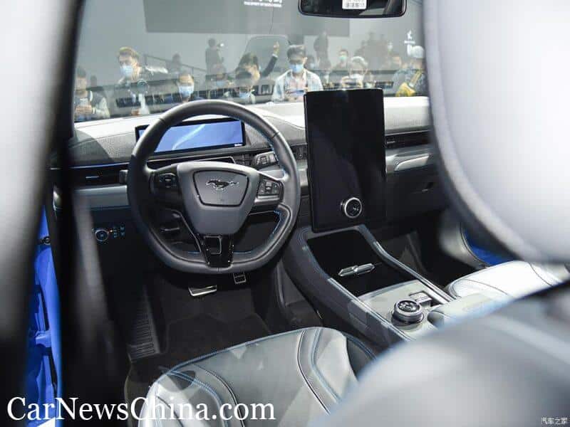 Interior-design is in line with the global Mach-E, with a huge 15.5 inch infotainment screen fixed in portrait mode above the center console. Chinese programs are compatible with the Sync 2.0 system onboard. A L2 driver assist package is standard with all Chinese Mach-E’s, using 6 cameras and 17 ultrasonic sensors. Like most EVs, the car has over-the-air upgrade capabilities.