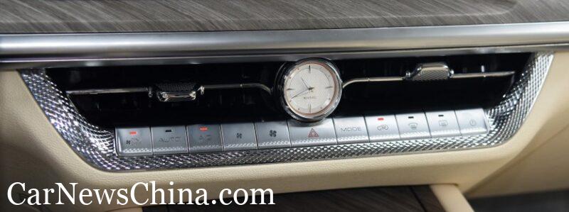The interior looks great, with beautiful trim and high end materials all around. There are leather sears, wood trim, and a nice Tank-branded analog clock in the center stack.