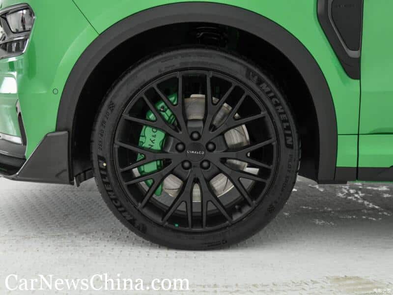 The tires are 20 inch but there seems enough space for 21 inch units. Lynk & Co branded brake caliper looks nice.