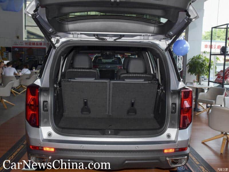 The all-new Trumpchi GS8 stands on a new platform, called GPMA. It grew in size too: 4980mm/1950mm/1780mm, and the wheelbase is 2920mm (old GS8: 4835 long and 2800 wheelbase). The GS8 seats 6 in a 2+2+2 configuration or 7 in a 2+3+3 configuration. The car on the photos is a 6-seat example.