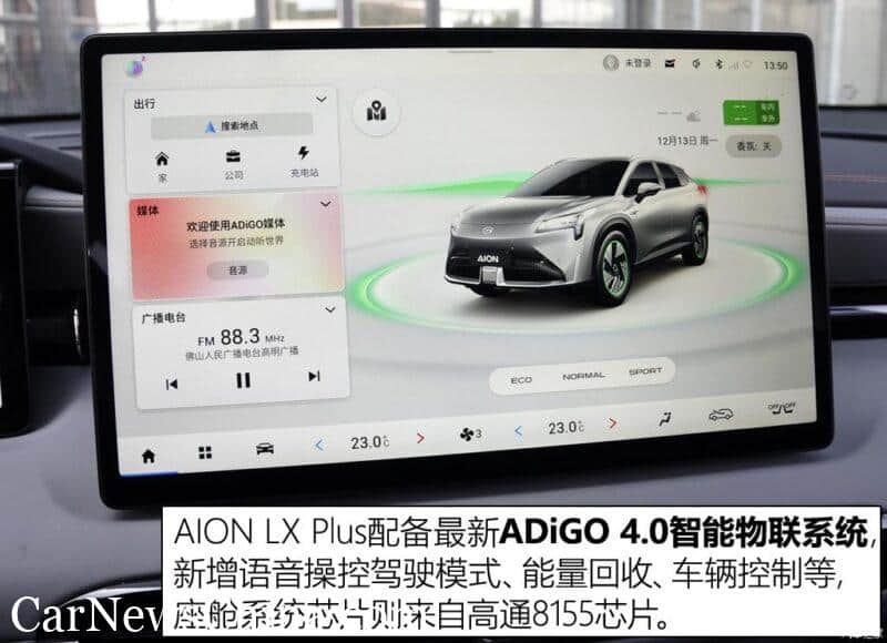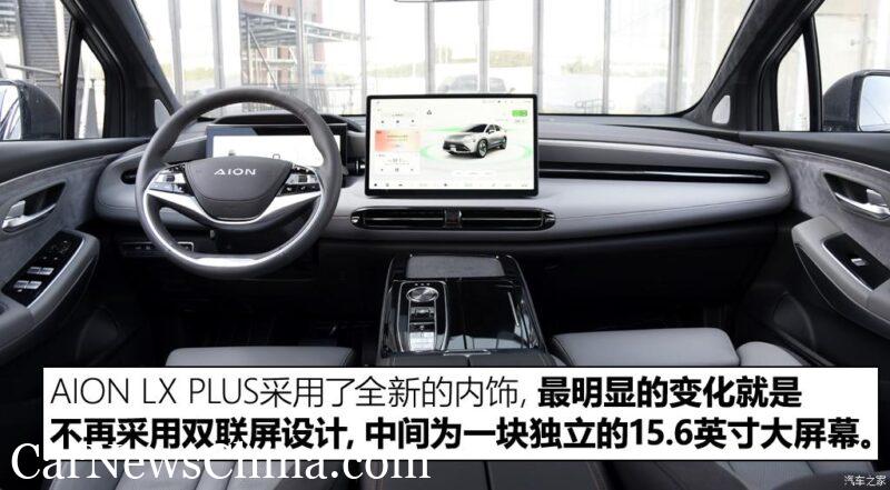 The interior of the AION LX Plus has been optimized. A 15.6-inch central infotainment system and a 12.3-inch LCD instrument panel are eye-catching.