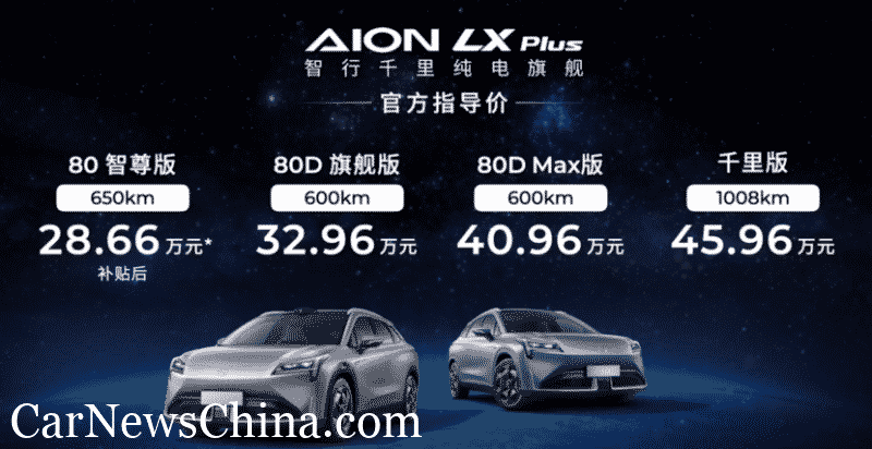 GAC Aion LX Plus launched. Starting at $45k. Chose between massive 144kWh battery and 500 HP