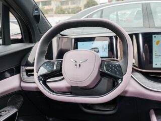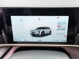 The car uses air suspension and gains rear-wheel steering. In the future an OTA will allow the car a crab walking mode. The turning radius is 5.3 meters, and the maximum turning angle for the rear wheels is plus or minus 8 degrees.
