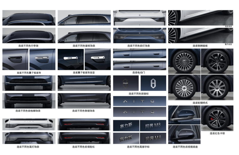 Six trims of the Aito M8 SUV were exposed by the Chinese MIIT, available in three pure electric ranges of 161 km, 235 km, and 240 km. The Aito M8 is positioned between the Aito M7 and the Aito M9, targeting the medium-to-large SUV market and competing with the Li L8 and L9. The official launch is expected in the first half of 2025.