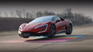 The Yangwang U9 is a two-door sports car with hefty dimensions of 4966/2029/1295 mm. Its curb weight is 2,475 kg, which is quite a lot for a supercar. However, the U9 packs four electric motors with a combined power output of 960 kW (1,287 hp) and 1,680 Nm. It accelerates to 100 km/h in 2.36 seconds.