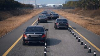 The official video shows the Maextro S800 sedan impressively maneuvering around seven Mercedes-Benz Maybach S-Classes, thanks to the crab walk feature. The four-wheel steering function allows the S800’s rear wheels to mimic the angle of the front wheels.