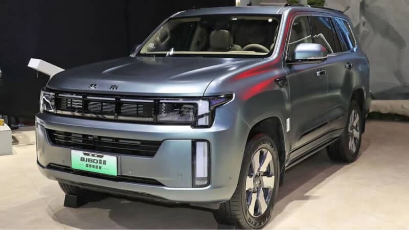 The BAIC BJ60 Thunder has a 1.5-liter turbocharged engine under the hood that acts as a generator. It doesn’t transfer any torque to the wheels, powering electric motors and a battery. The peak power of this ICE reaches 138 kW (185 hp). The BJ60 Thunder has a single ternary NMC battery for 40.3 kWh. This pack sends power to two electric motors. The front e-motor generates 153 kW (205 hp), and the rear motor has a peak power of 250 kW (335 hp).