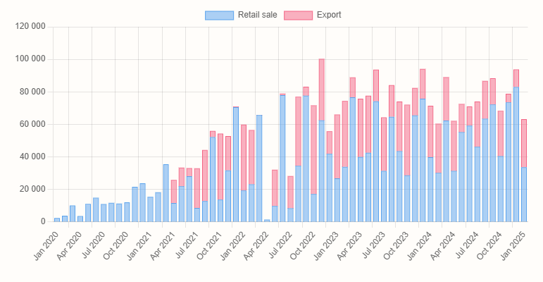The Facelifted Model Y, codenamed Juniper, was launched on January 10 in China, reportedly receiving 50,000 preorders in a day. Two trim levels are on sale, with prices ranging from 263,500 to 303,500 yuan (35,950 to 41,400 USD).