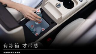 The BYD Qin L EV has a refrigerator for four bottles in the center tunnel. This storage box also integrates a heating function. Its working temperature range is minus 6 to plus 50 degrees Celsius. Other features of the center tunnel include two cup holders, two wireless phone charging pads, and a block of physical buttons. The BYD Qin L EV also has a large rotatable screen.