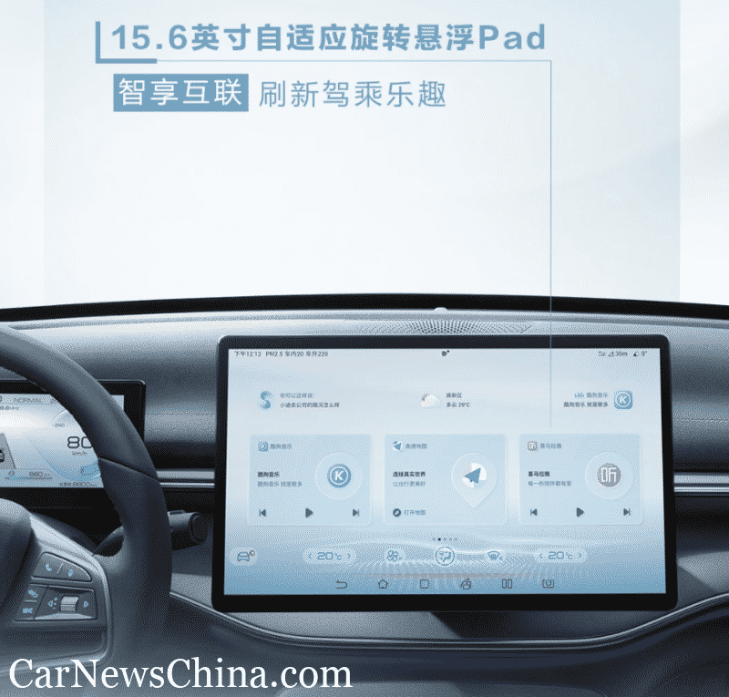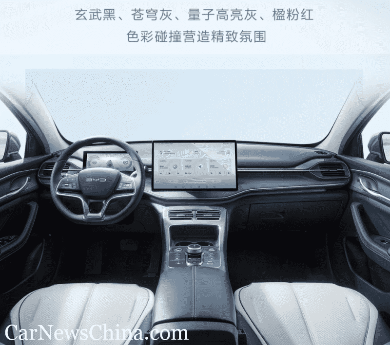 With the release of the official interior, we can see that the BYD Destroyer 05 is equipped with two separate screens, one 8.8″ instrument panel and one 15.5″ for the infotainment. The 15.5″ can rotate from landscape to portrait.