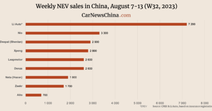 China NEV sales in the week Aug 7-13: Zeekr 1700, Nio 3200, Tesla 14000